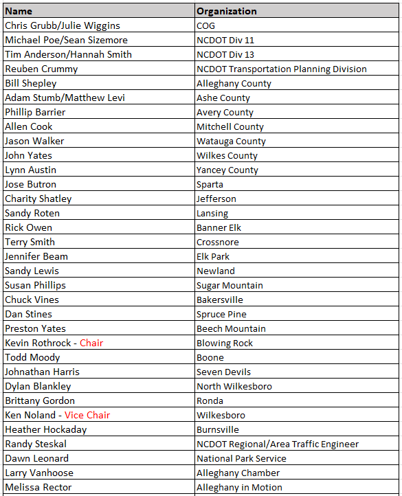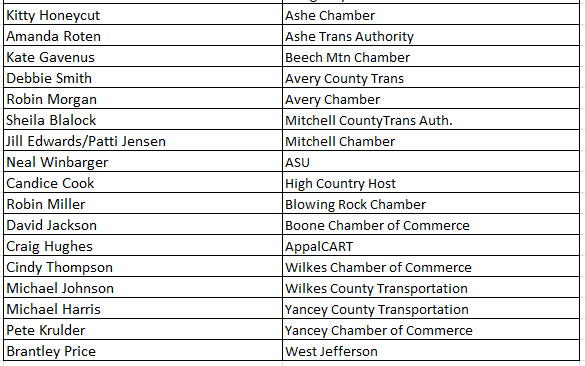 Transportation Planning is provided through operation of the High Country Rural Transportation Planning Organization (RPO). The High Country RPO provides a forum for local officials to develop plans and projects in conjunction with the NC Department of Transportation.